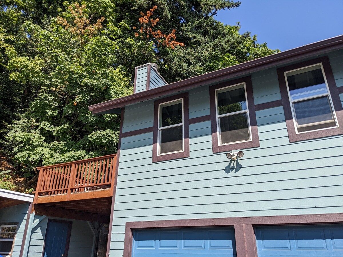 Matatagpuan kami sa South Hills ng Eugene. Malapit sa U of O na may madaling access sa pagmamaneho sa mga amenidad. Ang garage guest house ay nasa 3 wooded acres w/ south views sa Creswell at mga tanawin sa taglamig ng Three Sisters sa silangan. Itinayo noong 2020, nagtatampok ang studio ng malaking walk - in shower, kumpletong kusina, at mga pasilidad sa paglalaba. Natutulog ang 6 (King, double sleeper sofa, at dalawang kambal) Paradahan para sa maraming kotse kung kinakailangan. I - unwind sa isang mapayapa at natural na setting ng Oregon, inaasahan naming i - host ka.