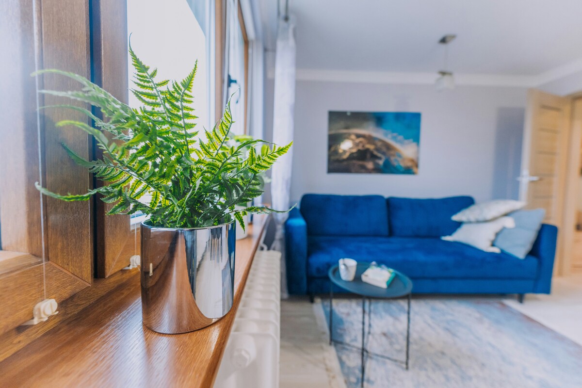 Isang 52m2 apartment na may malaking balkonahe, sa unang palapag. May kumpletong kusina: dishwasher, washing machine, refrigerator, oven, kubyertos, salamin, kaldero at kawali. Maluwang na sala na may malaking fold - out na sulok, aparador, bookcase na may mga drawer, TV na may Netflix, libreng WiFi. Isang silid - tulugan na may 140cm double bed. Banyo na may shower. Libreng pampublikong paradahan 24 na oras sa isang araw