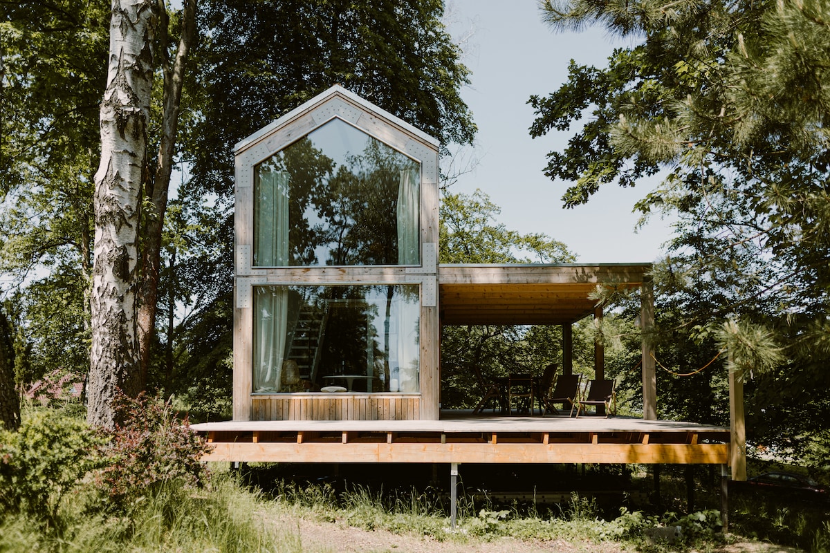 Nangangarap na magpahinga mula sa kaguluhan ng pang - araw - araw na buhay, at lumayo sa pang - araw - araw na buhay, at sandali lang para sa iyong sarili? Huwag mag - atubiling ipagamit ang aming natatanging lake house. Sa aming lugar, puwede kang gumugol ng katapusan ng linggo, magbakasyon, o magtrabaho nang komportable. Tinatanaw ng deck ang hardin. Ito ang perpektong lugar para simulan ang iyong araw sa pamamagitan ng isang tasa ng mabangong kape o tapusin ito ng isang baso ng alak habang tinatamasa ang kapayapaan at katahimikan ng nakapaligid na kalikasan sa aming marangyang hot tub.
