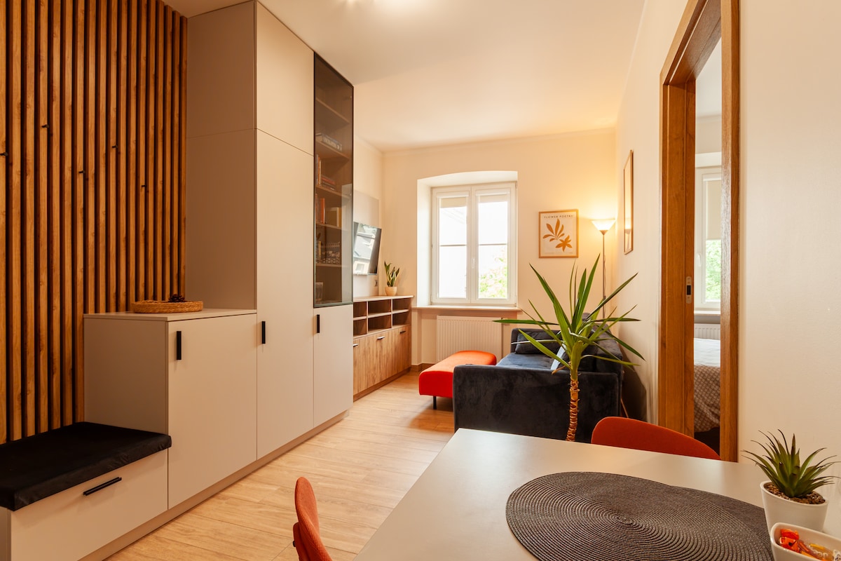 Nowy apartament w sercu Starówki. W apartamencie zapewniono 1 sypialnię, aneks kuchenny z lodówką i zmywarką, telewizor z płaskim ekranem, część wypoczynkową oraz łazienkę z prysznicem. W apartamencie zapewniono ręczniki i pościel.