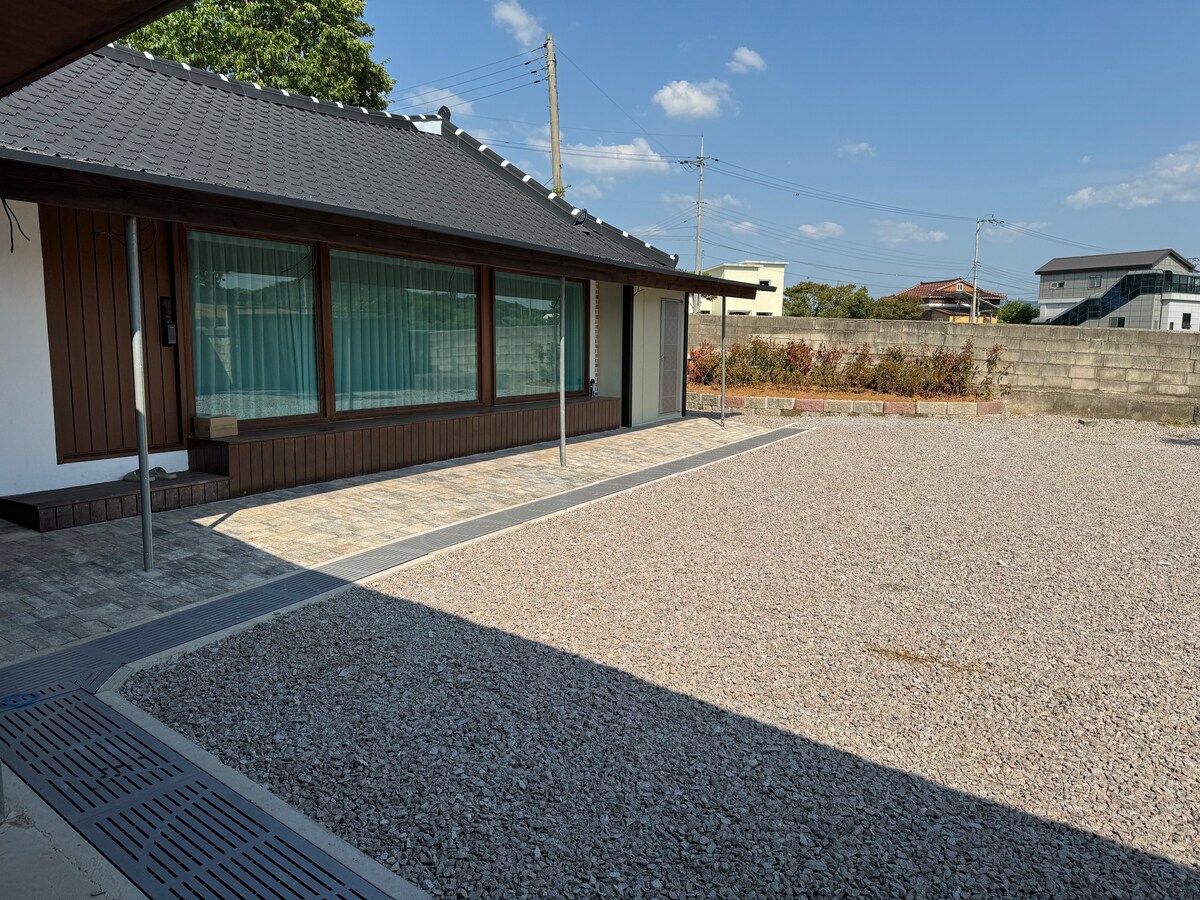 Ngayon. Dito. Isang lugar para sa iyo na gusto lang magpahinga sa isang magandang lugar. Kung pupunta ka sa Jeonju, narito na ang pahinga. 30 minutong biyahe mula sa Hanok Village. Magpahinga sa magandang tuluyan na napapaligiran ng kalikasan na nagpapaalala sa Zalsburg. Isang team lang kada araw ang makakapamalas sa magagandang tanawin at hardin. Sa likod mo, ang Yubongsan Mountain, at sa hinaharap, may magandang tanawin ng hardin na may dalawang lawa sa kahanga - hangang lumang Haenggungter. Ang Wibongsa, Yubongsanseong, at Wibong Falls ay nasa loob ng 10 minutong lakad, at maraming lugar na masisiyahan at makikita sa malapit, kabilang ang mga kamangha - manghang biyahe. Available ang mga outdoor barbecue facility. Ang halaga ng paggamit ng uling at ihawan ay 20,000 won. (Kung nagyeyelo ang tubig sa labas kapag taglamig at mahirap linisin ang ihawan, maaaring mahirap mag‑ihaw.) Kung magdadala ka lang ng kahoy na panggatong, puwede mo ring i - enjoy ang fire pit. Hindi puwedeng ihurno sa loob ang inihaw na karne o isda (kabilang ang hipon, atbp.). Posible ang Tangyu. Salamat sa iyong mabait na pakikipagtulungan