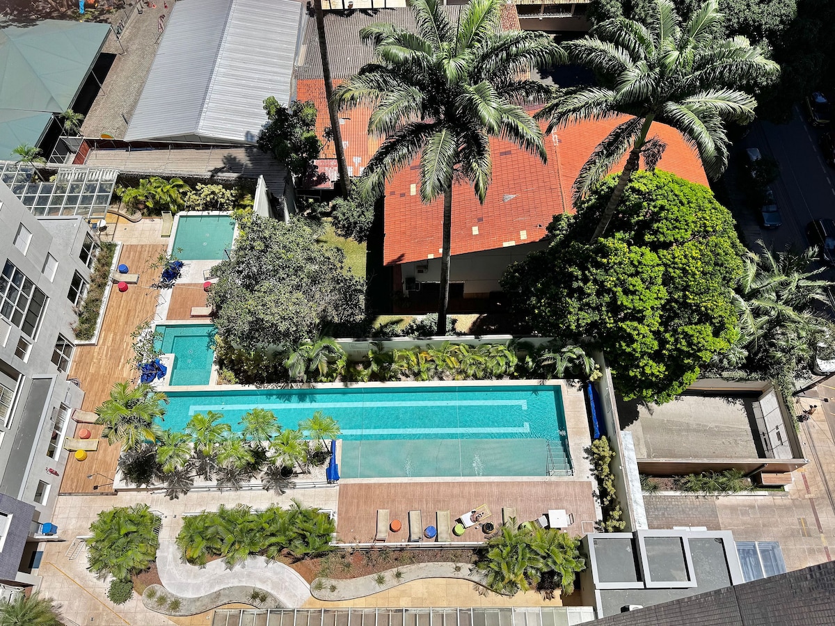Buong apt, na may availability ng 01 Kuwartong may queen bed at pribadong banyo. Maaliwalas na apartment at magandang ilaw sa condominium na may magandang kaligtasan, kolektibong lugar na may pool at fitness center. Matatagpuan sa isang marangal na kapitbahayan, malapit sa ilang bar, restawran, shopping at parke. Ito ang tirahan ko at umuupa ako kapag nasa labas ako ng bayan para magtrabaho. Maligayang pagdating!