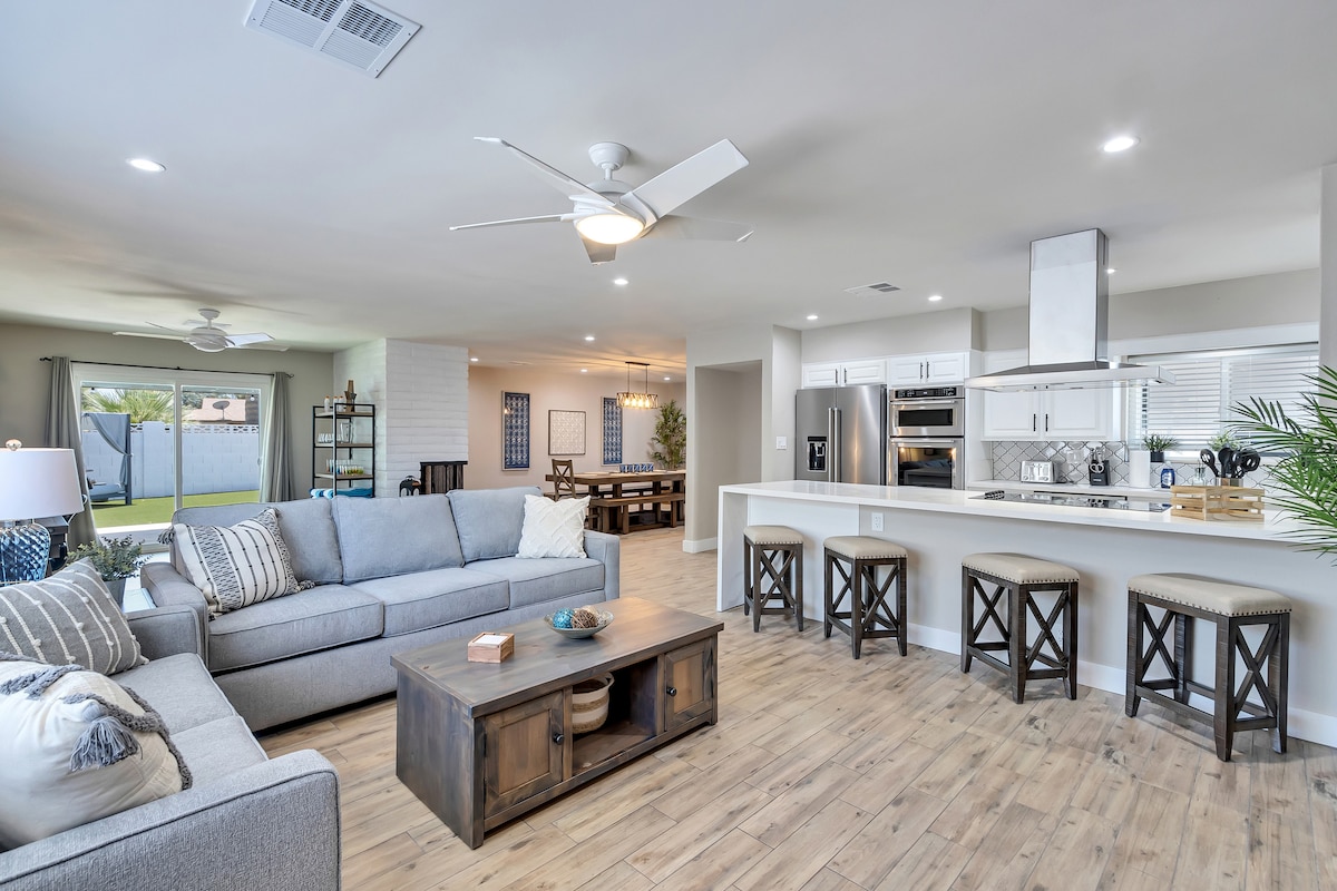 Napakaraming lugar para sa mga aktibidad! Sinasabi ng aming mga review ang lahat. Gustong - gusto ng lahat ang magandang tuluyan na ito na 5BD/3BA. Pinainit na pool at spa. Kusina ng chef na may kumpletong kagamitan. Nakatalagang work space at gigabit Wi-Fi. Mainam para sa mga bata at aso. Hanggang 12 ang tulog. 4 na TV w/ libreng streaming. Gas fireplace, BBQ, table tennis, PAC - MAN, cornhole at tonelada ng mga laro. Tahimik na kapitbahayan w/ parke at palaruan. Malapit sa mga restawran ng Gilbert Heritage. Huwag palampasin ang farmer's market. Kasayahan sa pamilya. Mga di - malilimutang pagkain. Pagdiriwang. Relaksasyon. Lahat para sa iyo.
