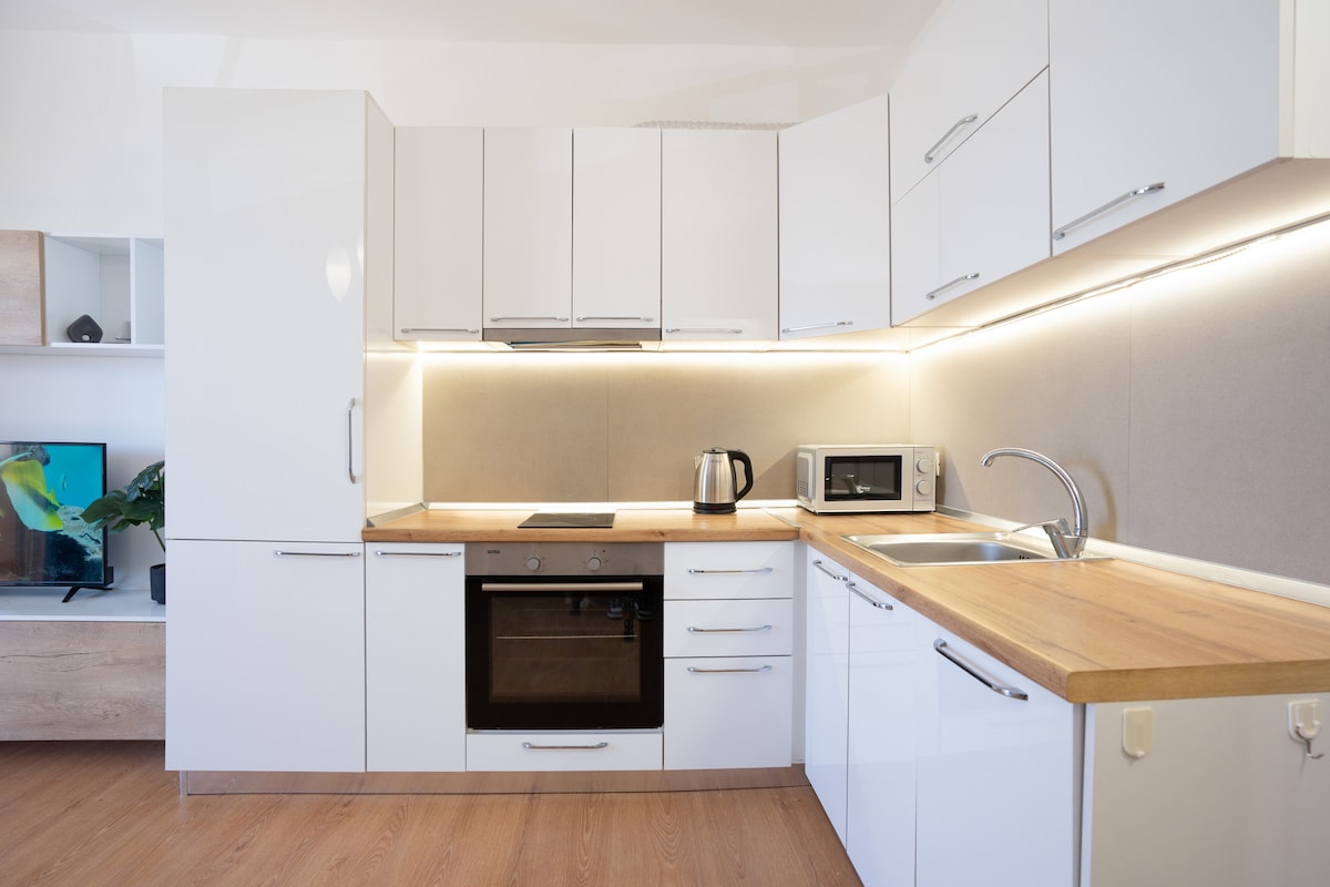 Matatagpuan ang Bral Apartment 9 sa isang madalas bisitahing lugar na nasa tabing‑dagat at malapit sa sentro ng lungsod (humigit‑kumulang 3.5 km). Nasa ika‑3 palapag ito (may elevator). Angkop ito para sa 4 na tao (isang kuwarto + sala/kusina, banyo, at 2 balkonahe). Mayroon sa kusina ang lahat ng kagamitan sa pagluluto, at ang apartment ay may air‑condition, may Wi‑Fi, TV, paradahan, atbp. Malapit ito sa pampublikong transportasyon, mga taxi, at paglalakad sa tabing - dagat.