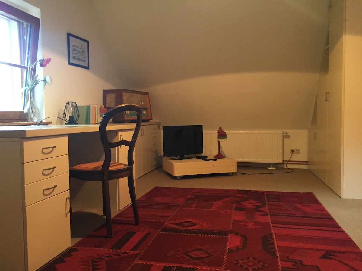 Die komplett ausgestattete Unterkunft liegt im Erdgeschoss mit ebenerdigem Zugang. Nach einem kurzen Fußweg (etwa 3 Minuten) erreicht man die Unterkunft von verschiedenen öffentlichen Verkehrsmitteln (Regionalbahn, Straßenbahn, Bus). Den kleinen Einkauf für Lebensmittel, Blumen, Bücher, Apotheke, Fahrradverleih, Restaurants und Pizzaservice, kann man im Umkreis von 200 m zur Unterkunft erledigen. Neu ab 09/ 2022: Optional kann 1 PKW-Stellplatz auf dem Grundstück für 5,00 €/Nacht gebucht werden.