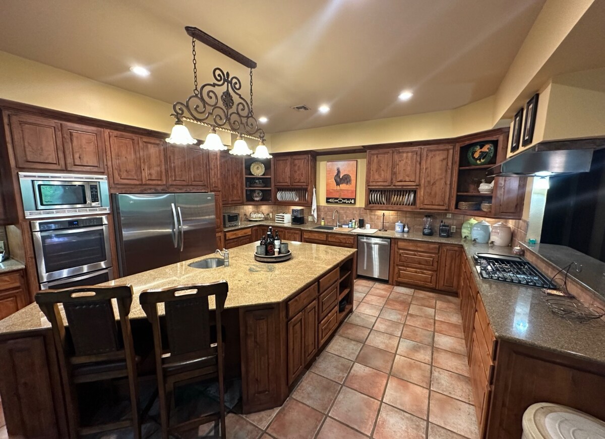 Pack your bags and escape to 9T Ranch, a luxurious 90-acre Texas retreat perfect for families, reunions, and group getaways. This sprawling hacienda-style home features elegant antique décor, a game room, chef’s kitchen, and multiple indoor & outdoor gathering spaces. Relax on the expansive patio, enjoy stunning views, explore the San Marcos River from the property and experience true Texas living - all just a short drive from Austin and San Antonio. Your perfect ranch getaway awaits!