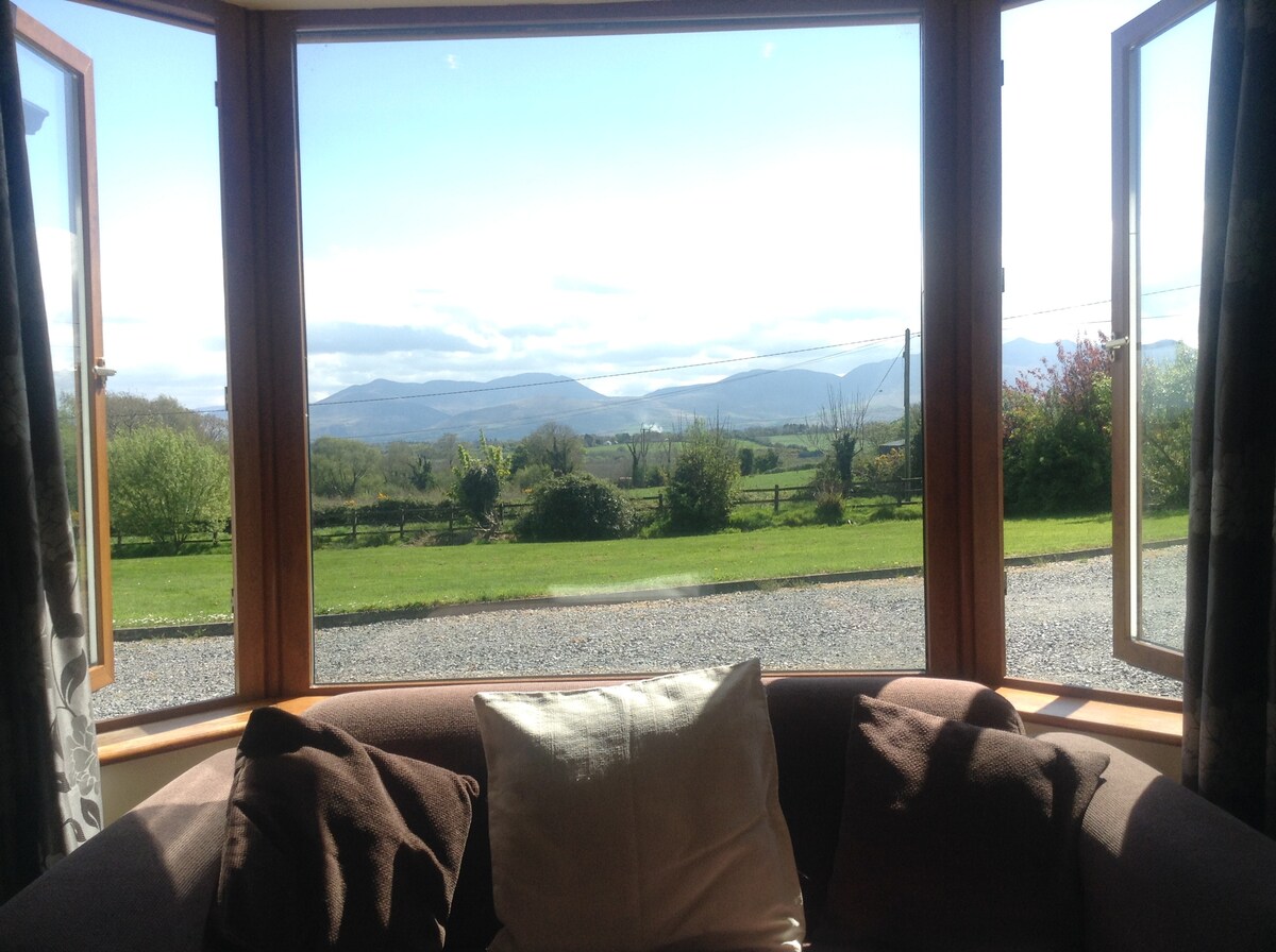 Ang aking 3 bed home ay may malaking hardin na nagsisiguro ng privacy. Masisiyahan ka sa mga nakamamanghang malalawak na tanawin ng Mcgillycuddy Reeks. Mayroon ito ng lahat ng kaginhawaan sa tuluyan para maging perpekto ang iyong pamamalagi. Ito ay ang perpektong base para sa paglilibot, Ang Reeks District,The Wild Atlantic Way, Ring of Kerry, Killarney, Dingle at marami pang iba. Umupo sa tabi ng bukas na apoy sa gabi at tingnan ang mabituing kalangitan. Mag - enjoy sa mga paglalakad, golf, pangingisda, pagsakay sa kabayo at 5 asul na flag beach sa malapit. Ang Reeks District ay isang palaruan ng pakikipagsapalaran.