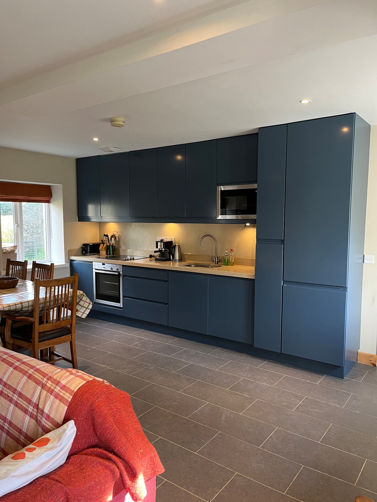 Buong lugar . Magandang maaliwalas na lugar na may tanawin ng dagat, bukas na apoy, at tulugan 2. Sariling pasukan sa buong lugar na may malawak na tanawin ng dagat na may access sa beach mula sa property . Kusinang may kumpletong kagamitan, komplimentaryong tsaa at kape, at ilang pangunahing mantika sa kusina, asin at paminta. Silid - kainan, silid - tulugan at ensuite na double bedroom. Shower room sa ibaba sa aming tindahan ng antigo na bukas 1 -5 sa panahon ng mga buwan ng tag - init.