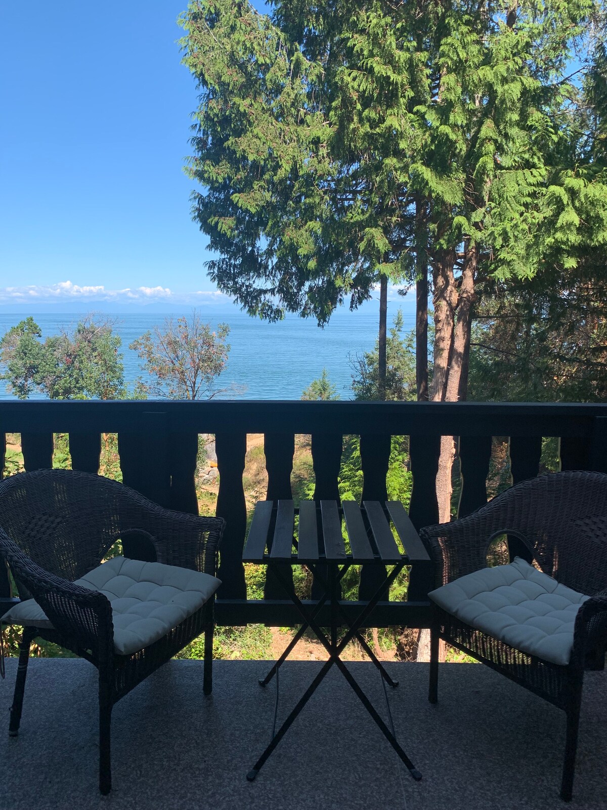 Maliwanag na na - convert na garahe na may hiwalay na pasukan na matatagpuan sa pagitan ng Bluffs at Mount Galiano. Tangkilikin ang mainit na inumin, tsaa o kape, o uminom ng malamig na inumin mula sa iyong bar refrigerator habang hinihintay mo ang iyong BBQ. Tinatanaw ng iyong pribadong deck ang isang halaman na perpekto para ma - enjoy ang muling pag - init ng pagkain mula sa mga lokal na restawran. Malugod mong tinatanggap na gamitin ang aming bakod na bakuran. Ilang minuto lang ang layo ng access sa kahanga - hangang Mount Galiano! Ang iyong rural na bahay sa "The Gem of the Gulf Islands" ay perpekto para sa 2 matanda kasama ang isang mas maliit na tinedyer.