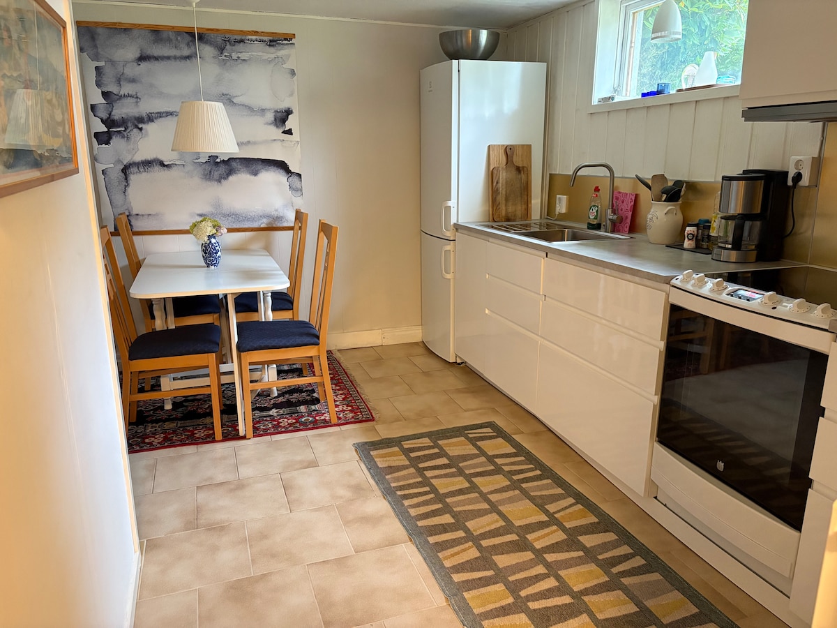Ang kaakit-akit na 65 m2 basement apartment sa isang kaakit-akit na lugar ng villa sa Mölndal, na matatagpuan malapit sa Gothenburg. Inihahanda namin ang mga kama at nililinis ang apartment nang walang dagdag na bayad. May kusina na may dishwasher at upuan. May 2-3 silid-tulugan, isa na may kumportableng double bed, isa na may dalawang single bed. May single bed sa sala at extra double bed sa malaking entrance room kung kinakailangan. Ikaw ay maninirahan sa apartment na may Wi-Fi. Tinatanggap namin ang mga bisita na higit sa 25 taong gulang. Kami ang mga host ay nakatira sa itaas na palapag.
