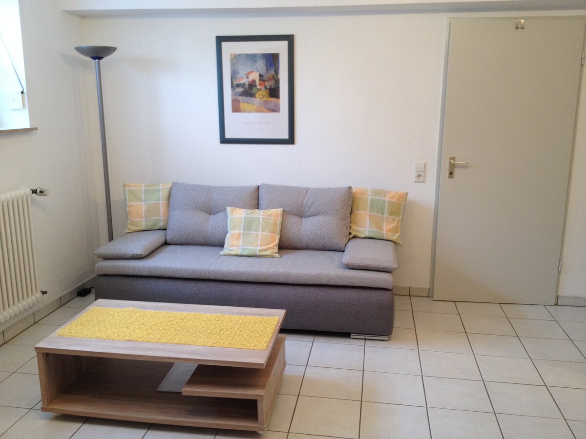 Mainam para sa 2 tao ang bagong na - renovate at naka - istilong apartment sa gitna ng Gottenheim. Mayroon itong bukas na sala at tulugan (kama 180x200), hiwalay na banyo na may shower at maliit na hiwalay na storage room (available ang washing machine). Sa sala/kainan, may moderno at kumpletong kusina na may dishwasher at Nespresso coffee machine.