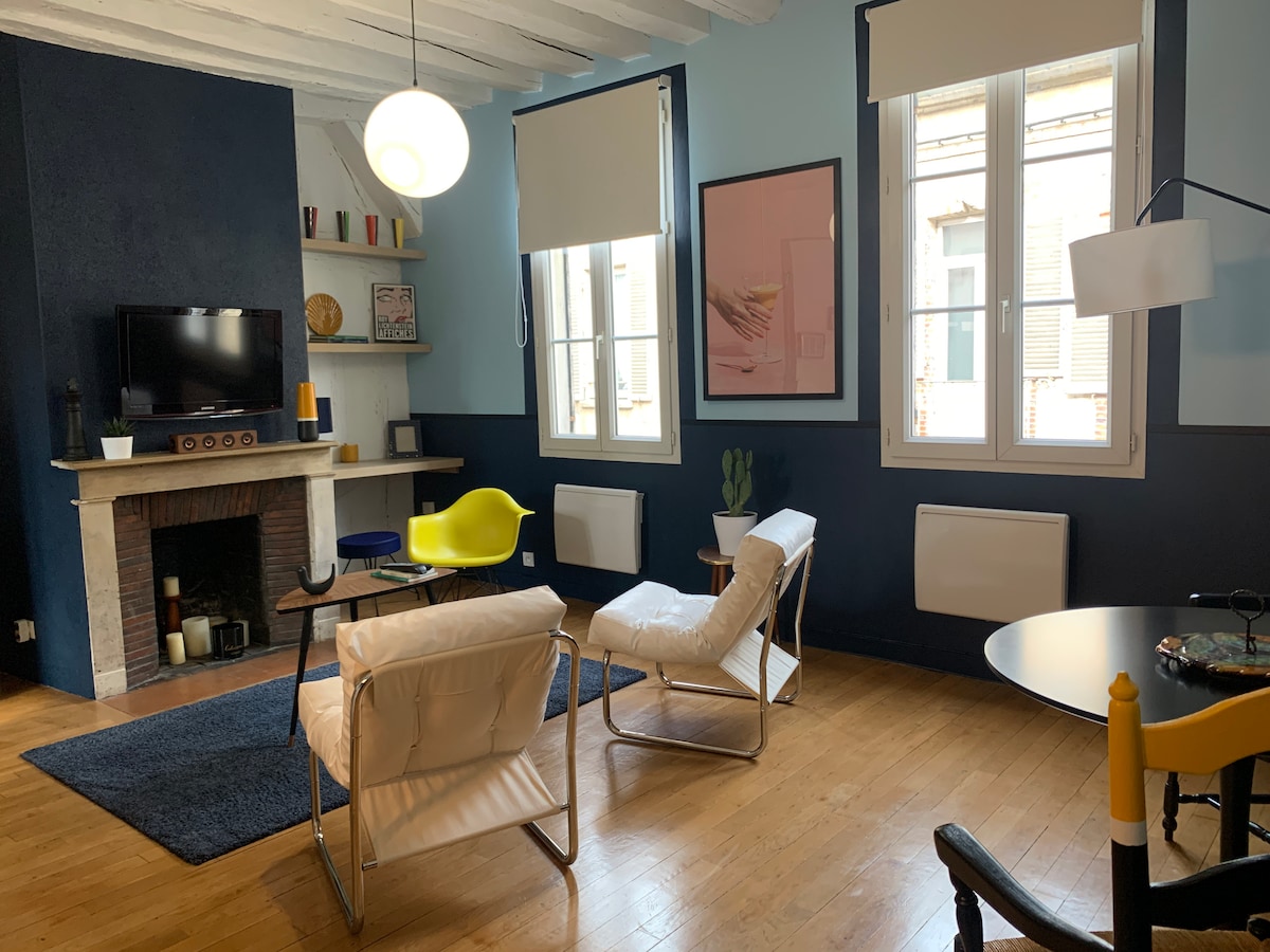 Naka-renovate na apartment na nasa makasaysayang sentro ng Sens, malapit lang sa katedral, pamilihan, at mga tindahan. Tahimik at maliwanag, nag‑aalok ito ng komportableng tuluyan na may hiwalay na kuwartong may mga dingding na salamin, komportableng sala, lugar na may mesa, at kusinang may kumpletong kagamitan. Modernong banyo, washer at dryer (common area), may linen. Sariling pag‑check in, Wi‑Fi. Madaling paradahan sa malapit. Mainam para sa business trip o weekend para sa dalawang tao.