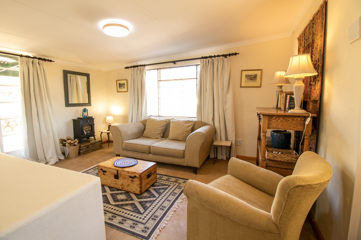 Isang tahimik, pribado at mapayapang cottage 17km mula sa Graaff - Reinet . Napapalibutan ng kalikasan at kabundukan. Masaganang birdlife. Walang katapusang saklaw para sa paglalakad, hiking, pagbibisikleta sa bundok at mga piknik. 4x4 na kalsada. Naghahanap maganda pagkatapos ng ilang ulan! Ang Cottage ay may kusinang kumpleto sa kagamitan at 2 en - suite na silid - tulugan pati na rin ang isang sleeper couch sa living area. May airconditioning ang living area. Indoor fireplace at outdoor braai. Paggamit ng swimming pool . Lugar kung saan makakapagrelaks.