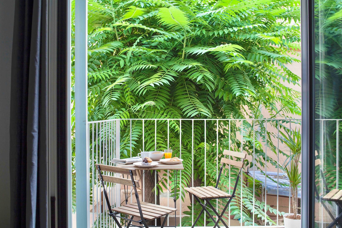Welcome sa maganda at modernong apartment na ito (na may komportableng balkonahe) sa magandang lokasyon sa Barcelona. Matatagpuan sa tabi ng masiglang kapitbahayan ng Gracia at maikling lakad lang papunta sa Paseo de Gracia. Nakaharap sa kalyeng may ilang pedestrian, tahimik at maliwanag ang flat. Mayroon itong lahat ng modernong amenidad dahil kamakailan lang ito naayos. Kusinang kumpleto sa gamit, A/C sa lahat ng kuwarto, Apple TV. Maluwag ang banyo at may modernong shower stall na may rain-head.
