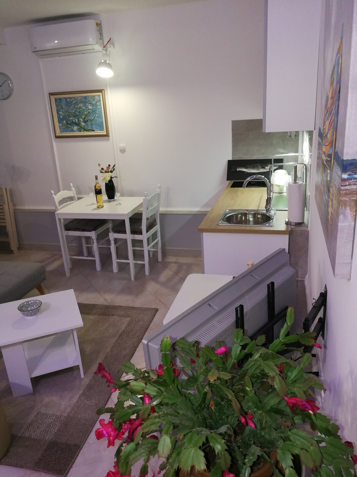 Ang Apartment Angie ay 65 m2 at may dalawang bagong pinalamutian na silid - tulugan, bagong pinalamutian na kusina, marangyang pinalamutian na sala, banyo at maluwag na balkonahe, kung saan matatanaw ang ilog. Mayroon itong aircondition, smart TV, at libreng wi - fi. Sa sala ay may malaking sofa bed.