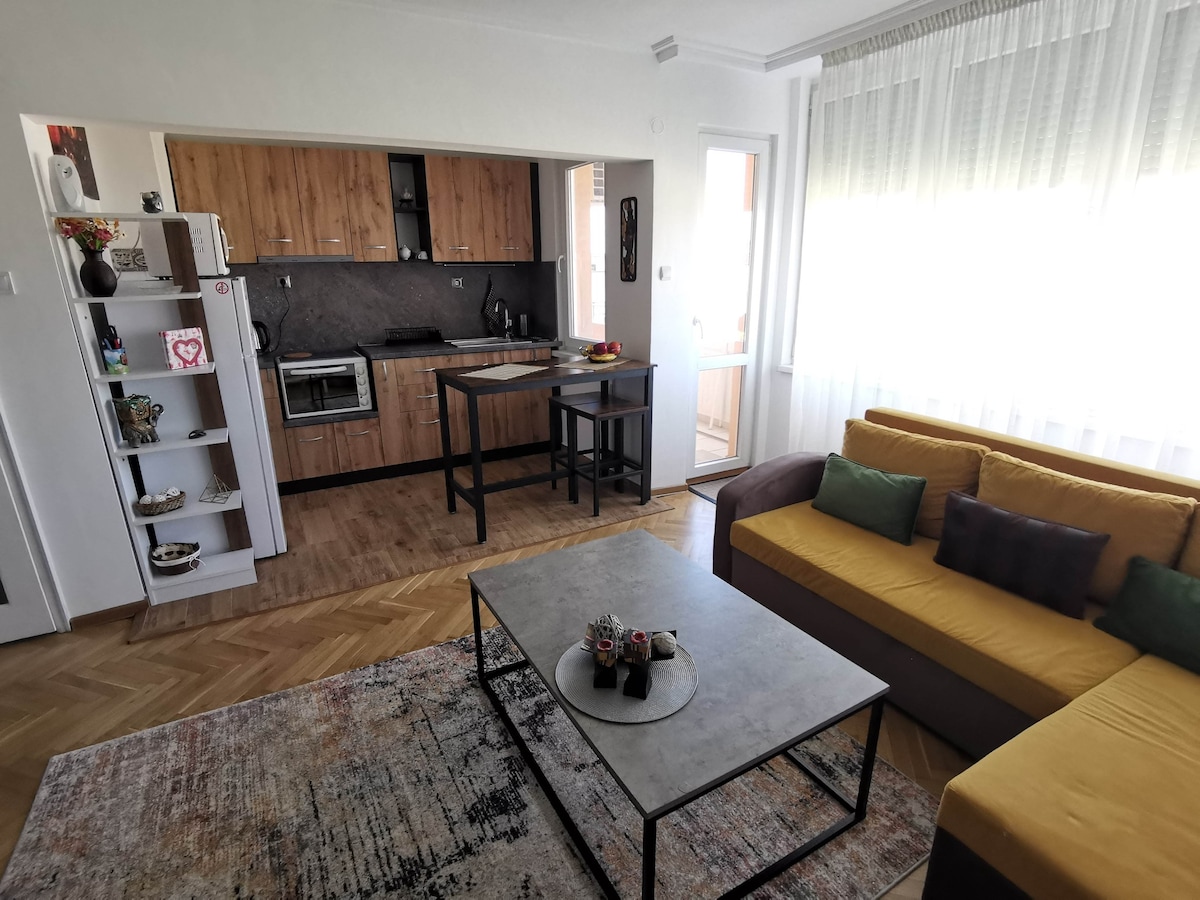 Welcome to my brand new and cosy place, designed with a lot of love,care and thought so you can have a truly relaxing stay in Plovdiv. The building is just in front of the International Fair Exibition, just a short walk to the City Center across the beautiful Maritza River. The neighbourhood is really lively, communicative and safe. I will be happy to meet you and accomodate you personally, so you will immediatelly feel as an old friend who came to visit :)