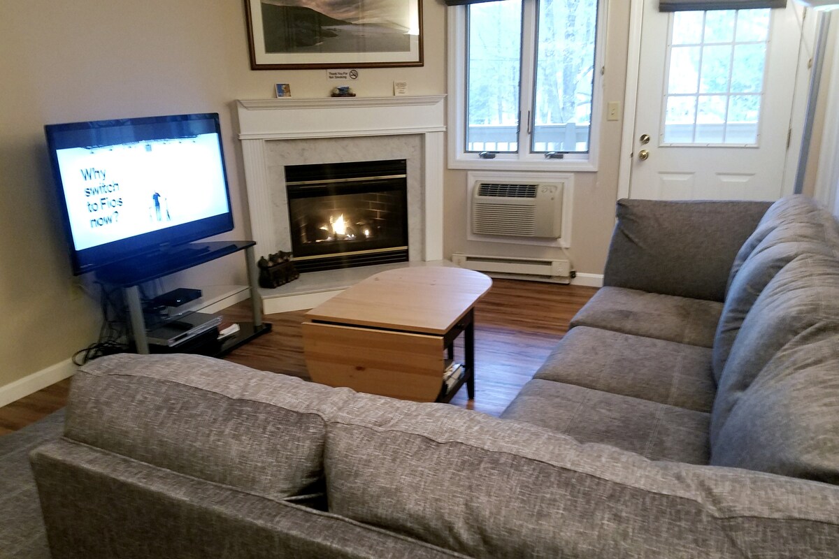Perpektong bakasyunan ang magandang inayos na resort condo na ito para sa hanggang 4 na bisita. Matatagpuan sa paanan ng South Peak ng Loon Mountain, sa gitna ng White Mountains ng New Hampshire, maaaring isawsaw ng mga bisita ang kanilang sarili sa kagandahan ng kalikasan sa panahon ng mga romantikong pagha - hike at iba 't ibang iba pang nakakamanghang outdoor na aktibidad. Tangkilikin ang masasarap na pagkain sa mga kalapit na restawran, at samantalahin ang dalawang swimming pool ng resort at Jacuzzi para sa pamamahinga at pagpapahinga. Mamahinga sa tabi ng Pemigewasset River sa likod ng aming complex!