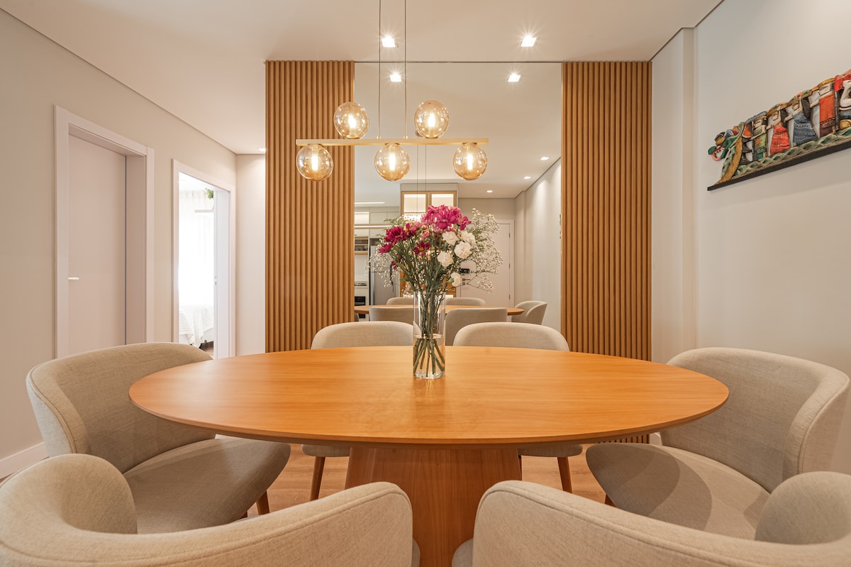Ang kamangha - manghang high - end na apartment na ito ay ganap na muling idinisenyo! Nag - aalok ito ng 180m2 at kagandahan sa bawat detalye, malalaking bintana na may eksklusibong malalawak na tanawin ng Quilombo Valley, 70"Smart TV sa sala at 43" sa dalawang silid - tulugan! Bukod pa rito, 2 bloke lang ito mula sa Coberta Street! Dahil ito ay matatagpuan sa sentro, magagawa mo ang maraming bagay habang naglalakad, na may kaginhawaan sa pag - alis ng kotse at pagmumuni - muni nang may kapayapaan at tahimik na lahat ng inaalok ng Gramado!
