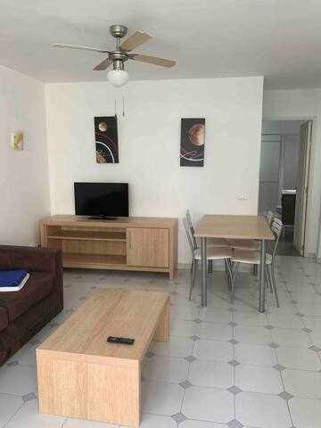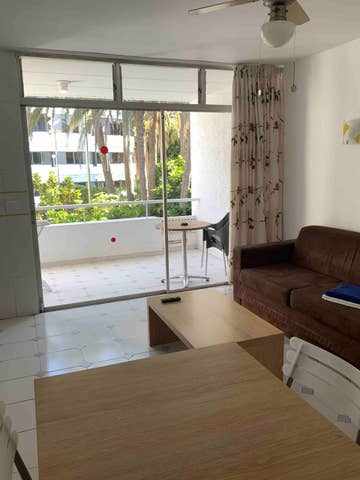 Apartamento de 1 dormitorio situado en una primera planta y con vistas parciales. Ubicado frente de la charca de Maspalomas, hay 2 terrazas a ambos lados del apartamento. Cuenta con salón-comedor, TV de pantalla plana, dormitorio completo y baño privado con plato ducha. La cocina viene totalmente equipada con nevera, vitroceramica, microondas, tostadora, tetera y cafetera. Hay una parada de autobús a 3 min andando y justo a 100 metros un pequeño centro comercial con restaurante y supermercado.