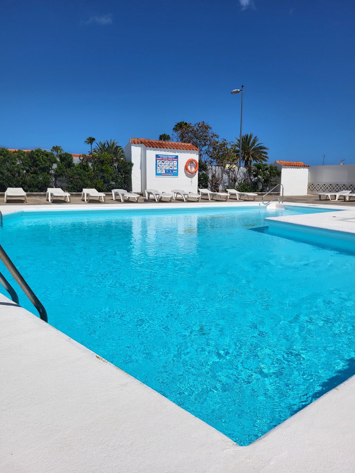 Ganap na na - renovate ang Precious Bungalow. Libreng paradahan, Libreng Wi-Fi, kumpleto ang kagamitan para sa ganap na malayang pamamalagi sa bakasyon. May washing machine at dishwasher. Sa tirahan ay may mga serbisyo ng Bar/Restaurant, 3 swimming pool (libre para sa mga residente at bisita 10:00 a.m./19:00 p.m.) 4 na bagong Padel court at isang holistic yoga center (Yoga Alliance School Maspalomas Lake).