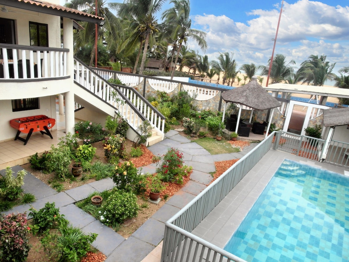 Matatagpuan ang tuluyang ito na nakapatong sa mga malalaking haligi sa bayan sa tabing-dagat ng Grand‑Popo at nag-aalok ito ng natatanging karanasan sa lahat ng amenidad nito at sa terrace nito na may 360‑degree na tanawin. Isang maliit na cocoon ang sala na nalilinawan ng liwanag mula sa tanawin. Nagbubukas ang kuwarto papunta sa malawak na banyo at sa pool na may lumulutang na net para sa mga residente. Gumising nang mahinahon sa isang villa sa tabi ng Karagatang Atlantiko sa isang rehiyon kung saan may iba't ibang kulay ng asul ang dagat.