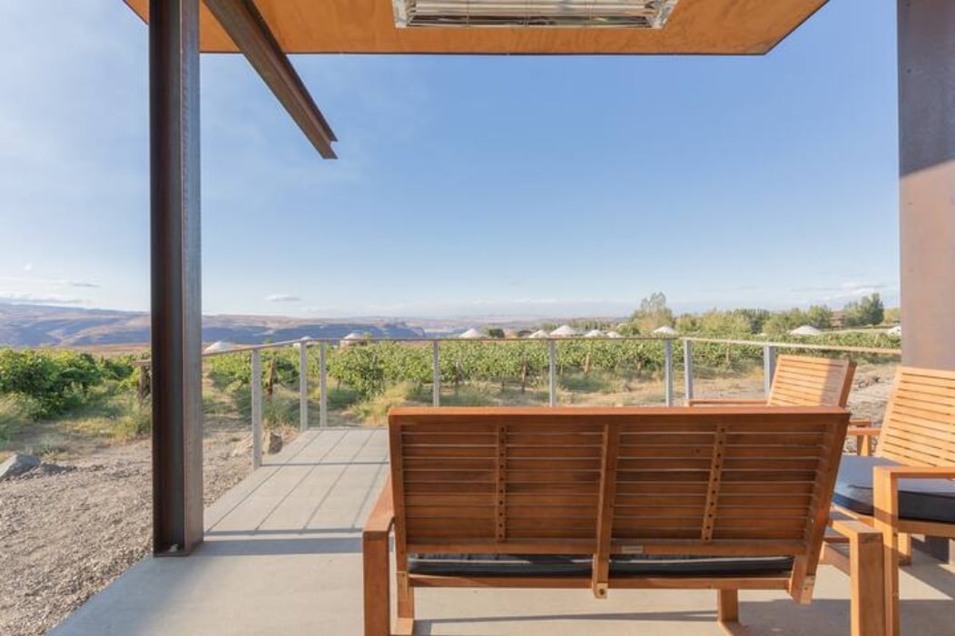 This home is built of natural materials by award winning architect Olsen Kundig to blend into a beautiful setting amongst the Cave B Winery Estate vineyards. With breath-taking views from the kitchen, deck and master bedroom, this is the perfect escape for family & friends. Take an indoor ride on our peloton, synch up for a concert, paddle board on the water, follow a hiking trails down to the Columbia River& enjoy a 10 min walk to the winery, the spa & the Gorge Amphitheater.