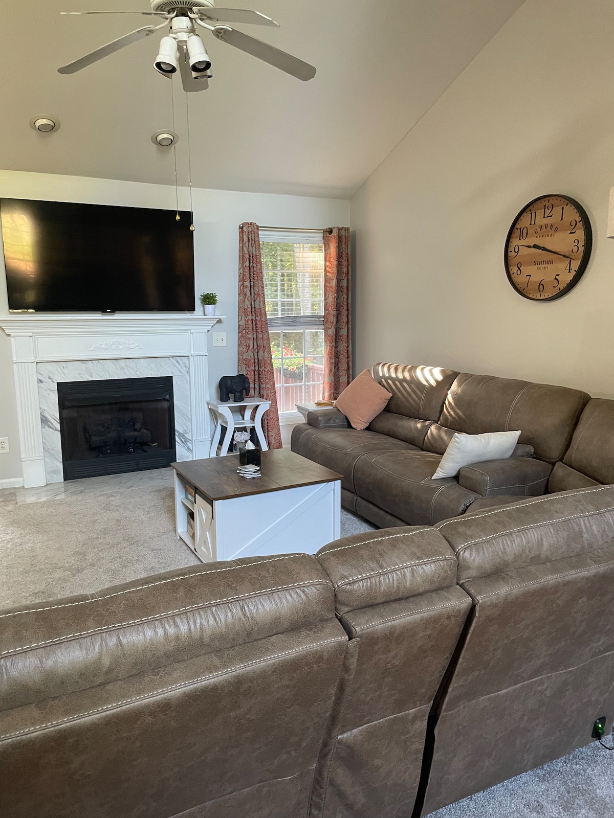 Maligayang pagdating sa Fox Hollow, isang naka - istilong at komportableng bakasyunan sa dalawang mapayapang ektarya. Maginhawa para sa parehong Raleigh at Durham, ngunit nakatago sa isang tahimik na kapitbahayan na may kagubatan, mararanasan mo ang pinakamaganda sa parehong mundo. Masisiyahan ang mga bisita sa lahat ng edad sa rec space na may ping pong, foosball, at marami pang iba. Kung nagpaplano ka man ng mahabang bakasyon o maikling bakasyon, ang pribadong spa at built - in na fire pit ay gagawing hindi malilimutan ang iyong pamamalagi at ang kumpletong kusina at komportableng higaan ay magpaparamdam sa iyo na ikaw ay komportable.
