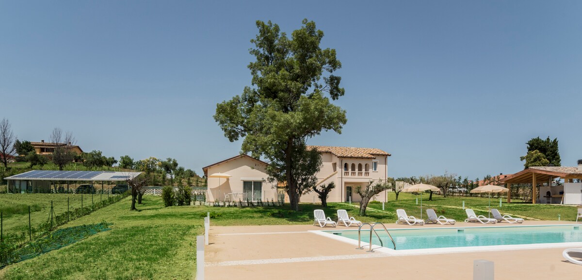 Magbubukas ito sa Hulyo 2018 pagkatapos ng maingat na paggaling ng isang lumang farmhouse sa bansa. Sa mga burol, sa pagitan ng Dagat Adriatico at Gran Sasso. Tamang - tama para sa mga naghahanap ng pagpapahinga , katahimikan at nais na matuklasan ang kagandahan ng Abruzzo. Sa loob lamang ng 15 minuto mararating mo ang beach ng Giulianova Nahahati ang farmhouse sa 4 na apartment, malaking parke na 80 metro kuwadrado, swimming pool , at barbecue area. Nasa ground floor ang apartment sa listing na ito at tinatawag itong PRATIDUE. ANGKOP PARA SA mag - ASAWANG A +1 na bata