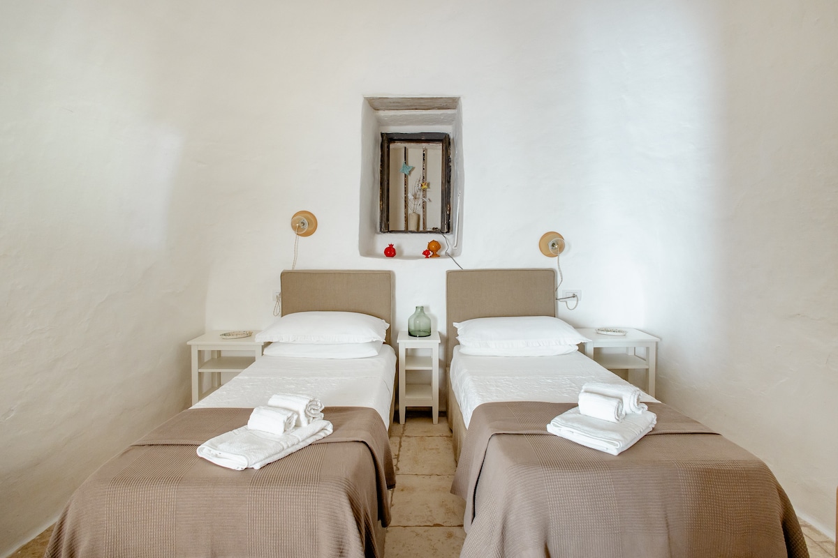 Ang aming b&b ay itinayo sa loob ng isang trullo na nabuo ng 3 cones at matatagpuan sa makasaysayang at tourist center ng Alberobello, isang UNESCO heritage site. Inayos kamakailan ang trullo na may paggalang sa lahat ng makasaysayang at arkitektural na feature ng estruktura nang hindi itinatakwil ang mga modernong kaginhawaan. Bukod pa rito, mayroon itong malaking hardin na magagamit lang ng mga customer gamit ang hot tube. Tuwing umaga, maghahain ng buong almusal sa loob ng iyong kuwarto na mainam na inihanda ni Mamma Nunzia.