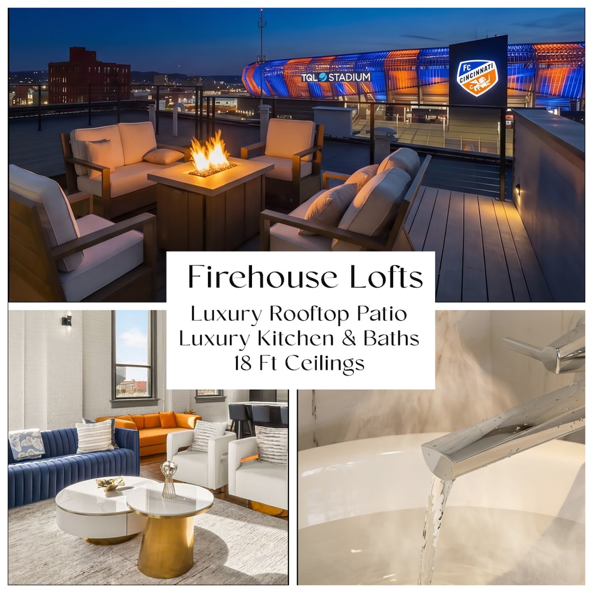 Maligayang pagdating sa The Historic Lyric Penthouse, isang sopistikadong living space na perpekto para sa mga mag - asawa at maliliit na pamilya. Masiyahan sa mga nakamamanghang tanawin sa skyline mula sa iyong pribadong rooftop terrace, na mainam para sa pagrerelaks o kainan ng al fresco. Nagtatampok ang magandang dekorasyon na sala ng Murphy bed para sa mga dagdag na bisita, na tinitiyak ang kaginhawaan nang hindi isinasakripisyo ang estilo. Matatagpuan sa gitna ng Cincinnati, malayo ka sa mga nangungunang atraksyon, kaya ito ang perpektong batayan para sa iyong bakasyon.