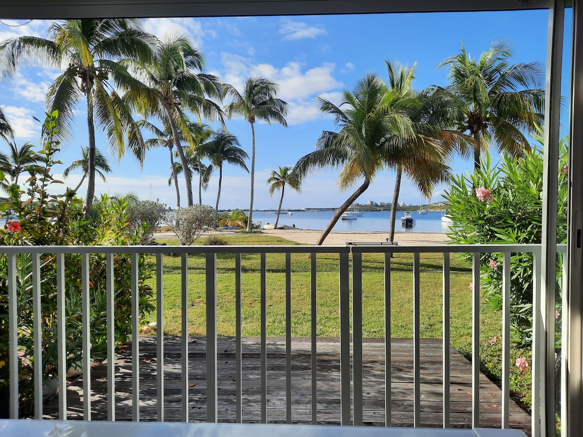 Perpekto para sa mga pamilya! May magandang tanawin ng karagatan, dalawang kuwartong may sariling banyo, at open living area ang malawak na beachfront duplex na ito. Nasa labas ang lahat ng aktibidad sa tubig, madali at masaya para sa mga bata. Mag-enjoy sa iyong kape sa umaga o mga inumin sa paglubog ng araw sa balkonahe habang malapit sa mga tindahan, restawran, at lahat ng kailangan mo. Malapit ang mga tindahan, restawran, panaderya, at supermarket. Simple, komportable, at pampamilyar ang tuluyan na ito na parang bakasyunan sa beach.