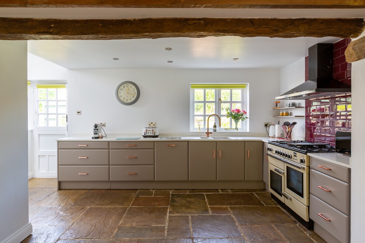 Natatanging bakasyunan sa kanayunan na nasa burol sa bukas na kanayunan na may mga nakamamanghang tanawin. Ang Retreat ay isang self - contained na 3 - bedroom home na katabi ng aming conversion ng kamalig sa 13 ektarya. Ang kamalig ay na - convert ng ating sarili sa dalawang antas - isang ground floor at isang underground (huwag mag - alala na ito ay napakagaan at maaliwalas sa mas mababang palapag!) Ang perpektong lugar para sa isang bakasyunan sa kanayunan para makapagrelaks at makapagrelaks. Mahusay na paglalakad at pagbibisikleta sa iyong pintuan o i - off lang, magpalamig at mag - enjoy sa tuluyan.