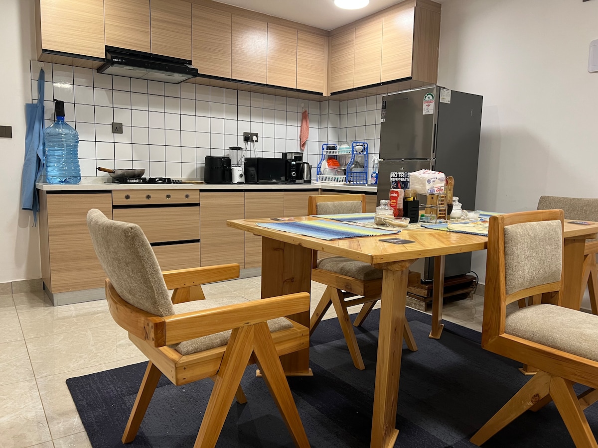 🏡 Maligayang pagdating sa iyong naka - istilong 1 - bedroom executive apartment sa gitna ng Lavington — perpekto para sa mga mag - asawa💑, business traveler💼, o weekend getaways 🌇! ✨ Mag‑enjoy sa modernong kaginhawa na may maluwang na open‑plan na sala 🛋️, kumpletong kusina 🍳, at washer at dryer para sa kaginhawaan mo 👕🧺, at maaasahang backup na kuryente ⚡. 📺 Magrelaks nang may libangan sa 75" Smart TV (Netflix🎬, YouTube Premium▶️, Libreng IPTV📡) o magpahinga gamit ang PlayStation 4 🎮 pagkatapos ng mahabang araw.