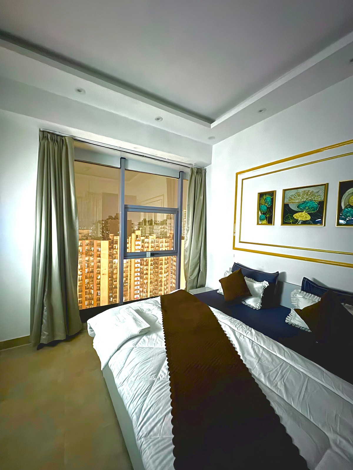 Madali lang ito sa natatangi at tahimik na bakasyunan na ito. Gugulin ang iyong oras ng kalidad sa pinakamataas na punto sa kabiserang lungsod. Makaranas ng pambihirang malalawak na tanawin ng lungsod at ilog mula sa ika -37 palapag. Nilagyan ang property ng ultra luxury furniture at kitchenette para sa komportableng pamamalagi. Kalimutan ang iyong mga alalahanin sa maluwag at tahimik na lugar na ito. Imaging naglalagi sa 37th floor na may isa sa isang milyong tanawin ng malinis na ilog ng Yamuna at Okhla Bird Sanctuary. Nagbibigay ito ng goosebumps, Hindi ba?