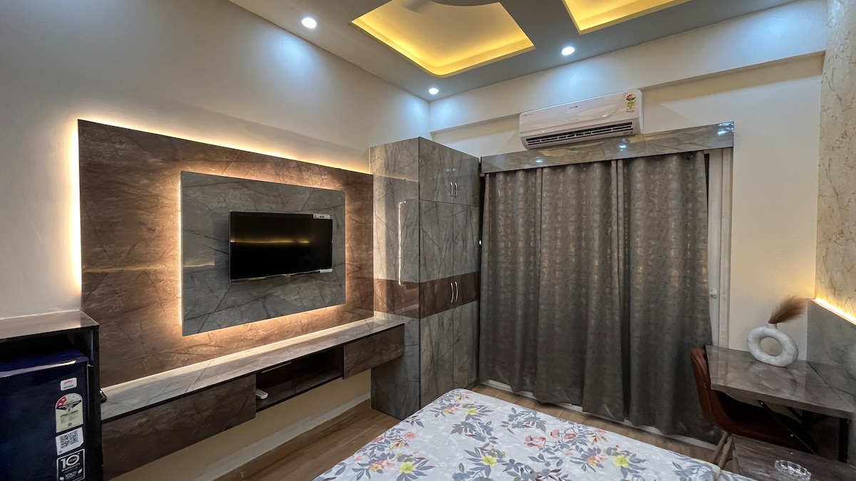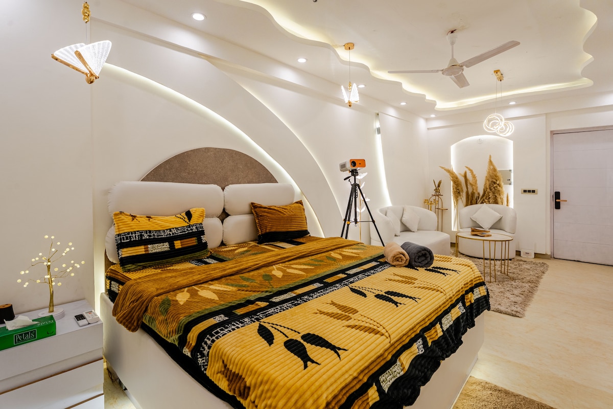 Maligayang pagdating sa White Dream by Vistara Apartments, ang iyong perpektong santuwaryo ng luho at estilo. Idinisenyo ang studio apartment na ito para mag - alok ng natatangi at sopistikadong karanasan sa pamumuhay. Pumunta sa isang mundo ng kagandahan na may ambient lighting na nagtatakda ng perpektong mood para sa anumang okasyon. Masiyahan sa nakakarelaks na pagbabad sa bathtub, o magpahinga gamit ang iyong paboritong pelikula na inaasahang papunta sa isang malaking screen.