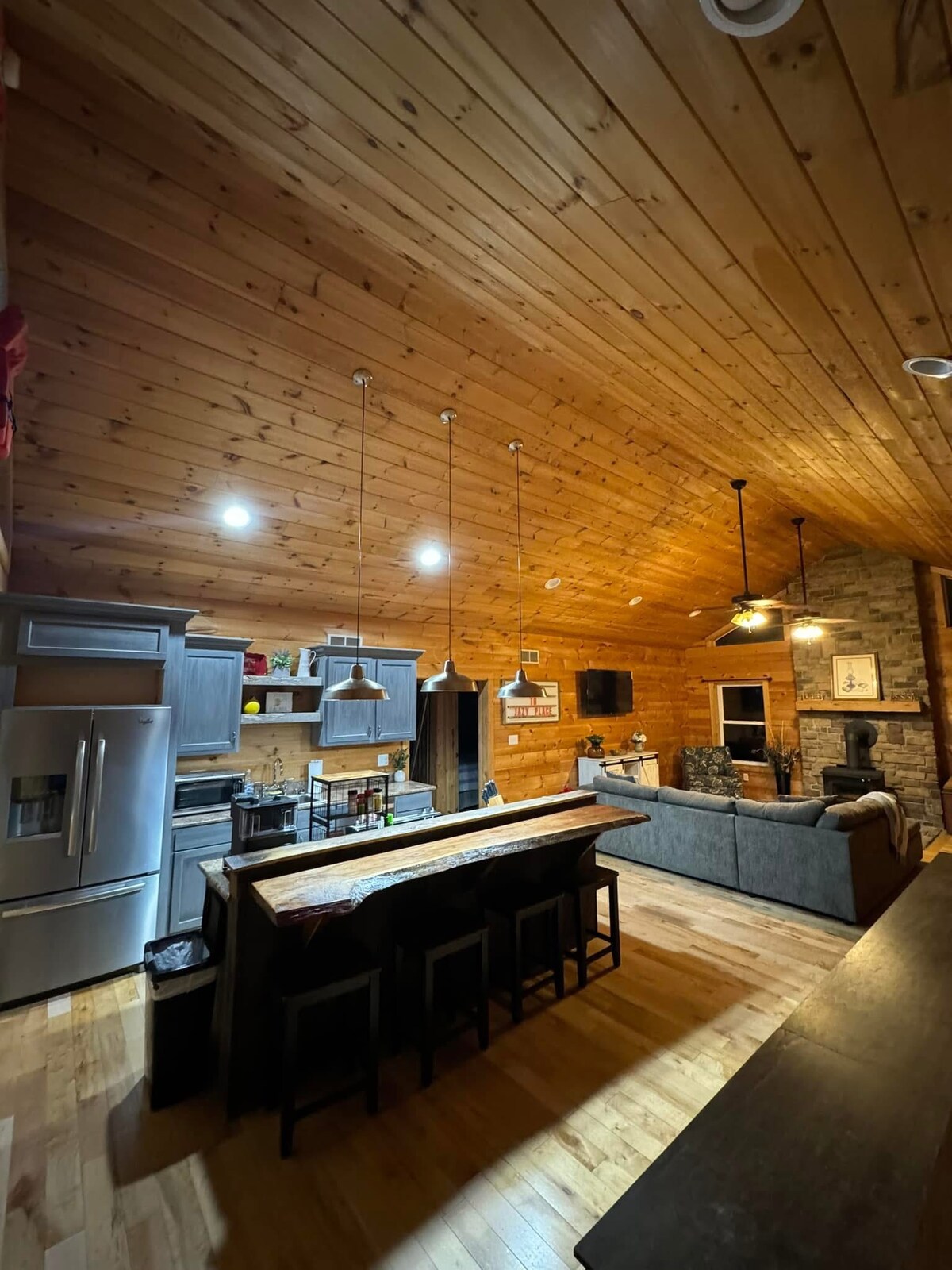 This peaceful Lakehouse cabin sits on a private lake in a beautifully secluded setting, perfect for couples, or anyone looking to unwind in nature. Though tucked away, it’s still just a short drive from local restaurants and shopping. Guests love the walking trail that circles the lake, the lower-level firepit right by the water, and the chance to enjoy catch-and-release fishing. Wildlife is abundant here, adding to the sense of escape at this hidden getaway in south-central Kentucky.