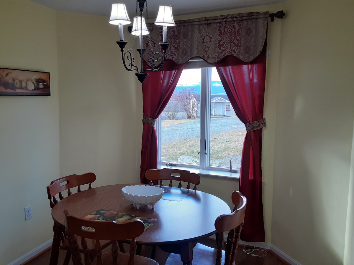 Ang Kahanga - hangang View ay angkop na pinangalanan; mayroon kaming halos 360 degree na tanawin ng mga bundok - Blue Ridge at Massanutten. Mayroon kang bentahe ng kusinang kumpleto sa kagamitan, dining nook na may tanawin ng mga bundok, buong pribadong paliguan, 12x12 na silid - tulugan, maluwag na lugar ng pamilya, cable, wifi, washer/dryer at pribadong paradahan sa loob ng pulgada ng iyong pintuan. Mayroon kaming mga inayos na laro, palaisipan, mga materyales sa pagbabasa para sa iyong mga ekstrang sandali at nakakarelaks na kasiyahan. Hinihiling namin na huwag kang magdala ng alagang hayop at bawal ang paninigarilyo, vaping, o droga.
