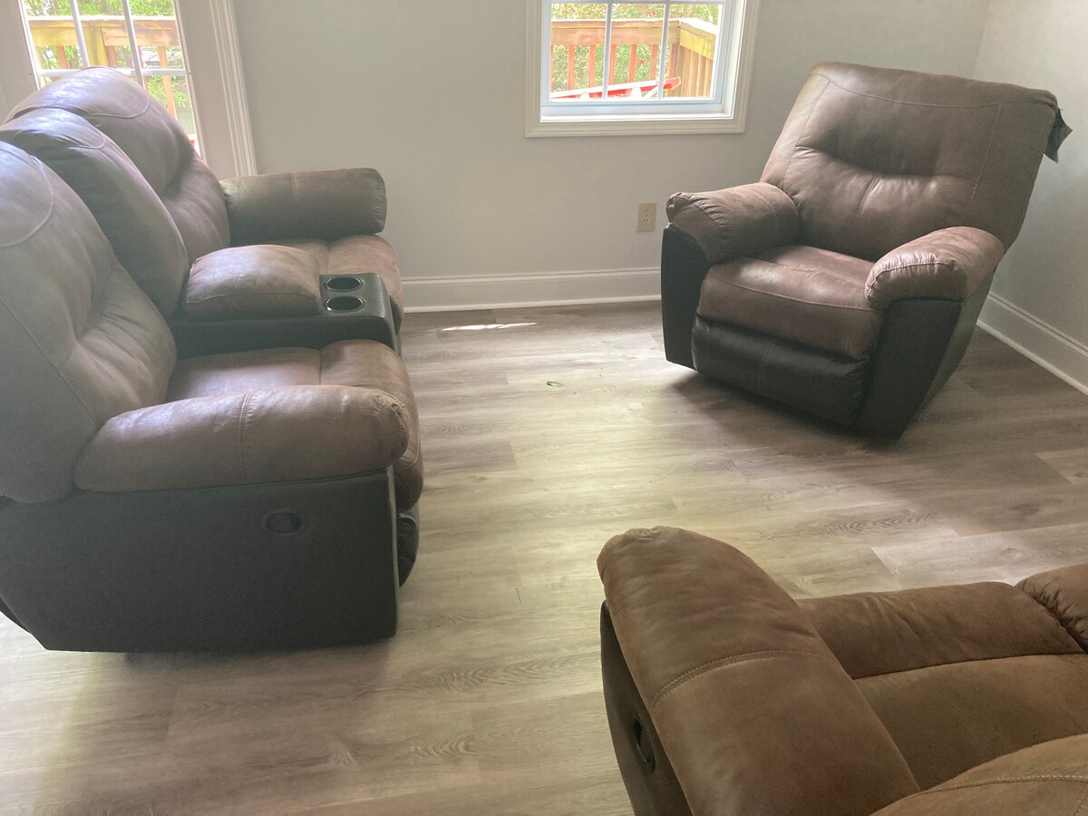 Matatagpuan ang Den sa gitna ng Greer, na nakatago sa backroad ngunit isang minuto lang mula sa Wade Hampton Blvd. Malapit sa tonelada ng mga restawran, tindahan at kape! Ang bagong na - renovate na The Den ay isa sa tatlong yunit sa triplex ng airbnbs. Mayroon itong sobrang malaking silid - tulugan, kumpletong kusina at smart TV sa parehong buhay at silid - tulugan. Magkakaroon ka ng access sa pinaghahatiang labahan sa lugar. Perpekto para sa anumang mabilis o matagal na pamamalagi, hindi na kami makapaghintay na i - host ka!