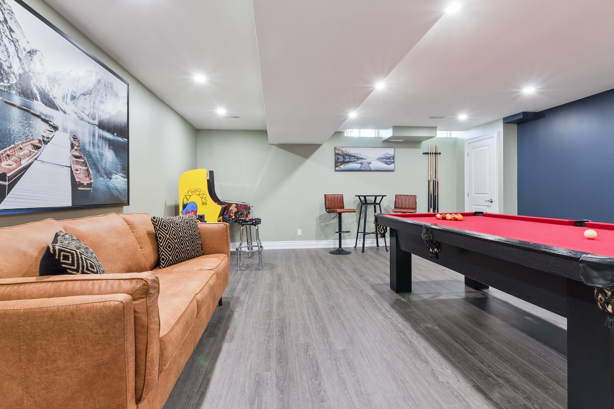 Ang premium Resort Home na ito ilang minuto lang mula sa mga ski slope at Village sa Blue Mountain, ay ang perpektong lugar para sa iyong espesyal na bakasyon. Nag - aalok ang Historic Snowbridge Resort Community na matatagpuan sa Monterra Golf Course ng access sa isang mahusay na pinananatili na pool at lounge area, pati na rin ang shuttle service para sa mga bisita. Malinis, komportable at maingat na idinisenyo, kumpleto ang 3 level unit na ito sa mga arcade game at pool table, 3 car parking, EV charger, outdoor dining at BBQ.
