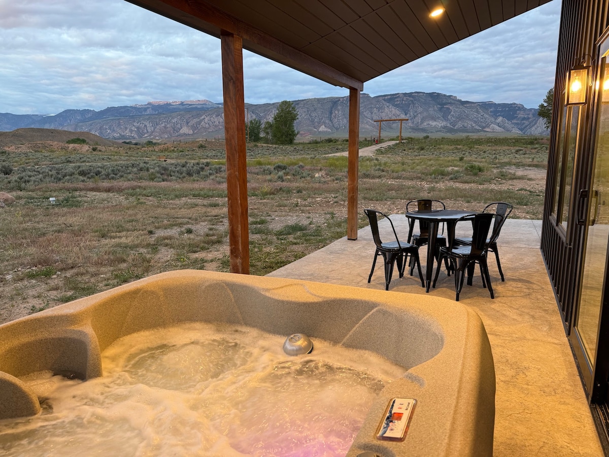 Amazing views in every direction, this Wyoming cabin sits on the 300 acre Ever Sky Ranch at the base of the Bighorn Mountains. Peaceful and serene ~ enjoy the sunrise over the mountains and sunset into the valley, watch cattle and horses graze as well as plenty wildlife, experience incredible birdwatching and spectacular starry night skies. Inside the cabin, enjoy comfy bedding, modern western decor, a well stocked kitchen, a luxurious bathroom, and a welcome book with all our local favorites!