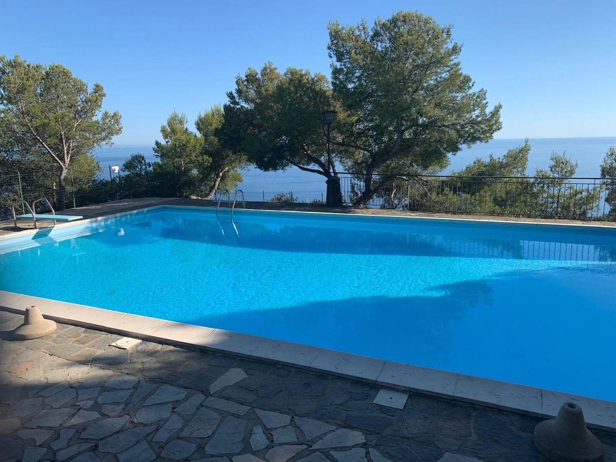 Sa Grimaldi di Ventimiglia sa hangganan ng France at Italy, matatagpuan ang bahay na ito na may mga nakamamanghang tanawin sa Menton, Monaco hanggang Saint Tropez. Ang bahay ay na - modernize na may maraming pag - ibig para sa detalye at ang pinakamataas na pamantayan. Nagtatampok ito ng maliit na heated pool kung saan maaari kang tumingin sa dagat tulad ng lumulutang sa slope. Ang bahay ay may dalawang silid - tulugan pati na rin ang banyo at malawak na lugar na panlipunan. Palaging kasama nito: nakamamanghang tanawin ng dagat!