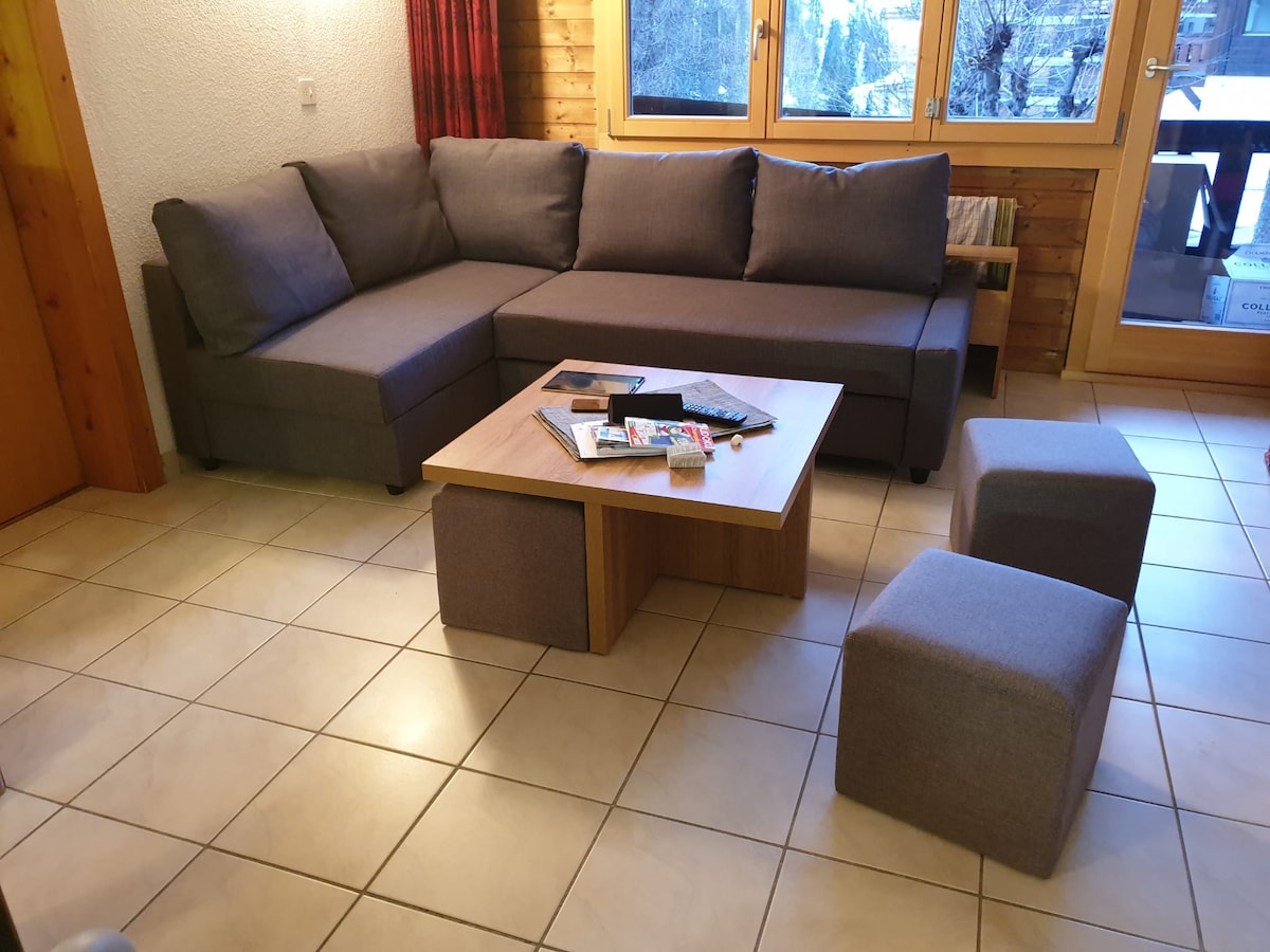 Magnificent Apartment, kabilang ang 1 silid - tulugan na may double bed, sala na may komportableng sofa bed, kusina at banyo. Maganda ang terrace, napaka - maaraw. Jacuzzi at sauna. Pribadong parking space sa paanan ng chalet. Liberty - pass para sa 2 tao mula sa katapusan ng Mayo hanggang sa simula ng Nobyembre (libreng bus, tennis, swimming pool, at higit sa 20 libreng aktibidad! 50% pagbabawas sa cable cars) Bago: terminal para i - charge ang iyong electric car.