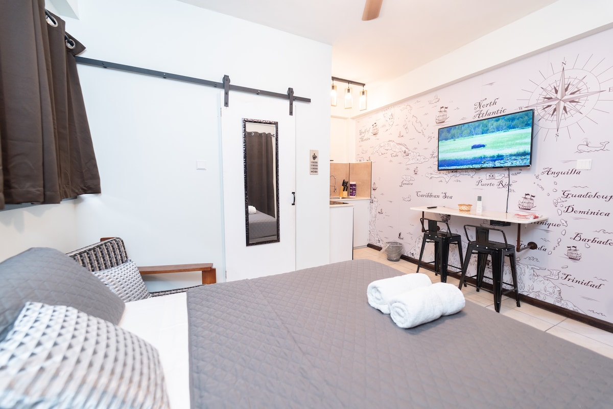 Irie Heights is located in the heart of Gros Islet. Enjoy picturesque sea views, from the private balcony of your 2nd floor studio apartment, facing the sea. You'll have access to a communal rooftop terrace with 180-degree sea views. This is the perfect spot for your morning coffee or to catch the sunset. Irie Heights is perfect for those wanting a truly local experience. You'll be seconds away from the beach, Gros Islet Street Party, and within walking distance of Pigeon Island and IGY Marina.