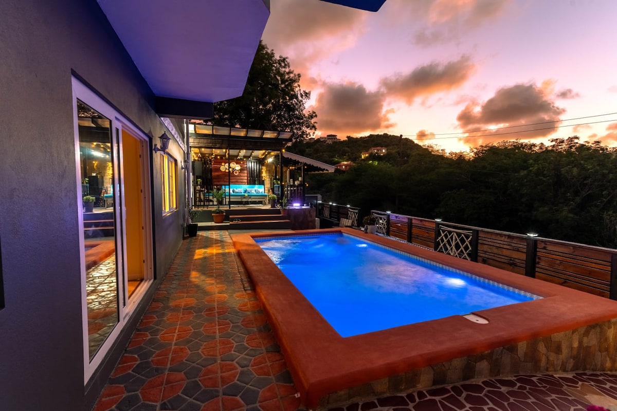 Dalhin ang iyong bakasyunan sa isla sa maluwang na 3 silid - tulugan na ito, 4 na banyong mapayapang Villa sa isang malaking 'berdeng' property. Maglakad sa kabila ng kalye papunta sa beach sa loob ng 4 na minuto. Masiyahan sa pribadong magiliw na pool na may maraming nakakarelaks na deck space at mahahalagang tanawin ng dagat (kahit na ng Martinique!). Matatagpuan sa loob ng maigsing distansya papunta sa dalawang malinis na beach, at nasa gitna ng mga pangunahing hotel kung gusto mong maging malapit sa mga sikat na destinasyon sa kasal. Naghahanap ka ba ng libangan? Malapit lang ang Rodney Bay!