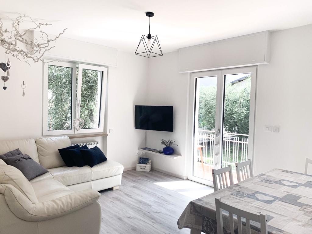 Appartamento ristrutturato con arredi moderni, molto luminoso e con ampi spazi. Dispone di tre camere da letto, un bagno con doccia e un ambiente open space: cucina spaziosa con tutti i comfort; soggiorno con comodo divano e Smart Tv. E' presente un balcone verso sud, con vista sul giardino. A disposizione degli ospiti offriamo un garage per deposito biciclette, motocicli e/o attrezzatura sportiva. Il giardino dispone di tavolo e sedie per gli ospiti dove poter gustare pranzi e cene.