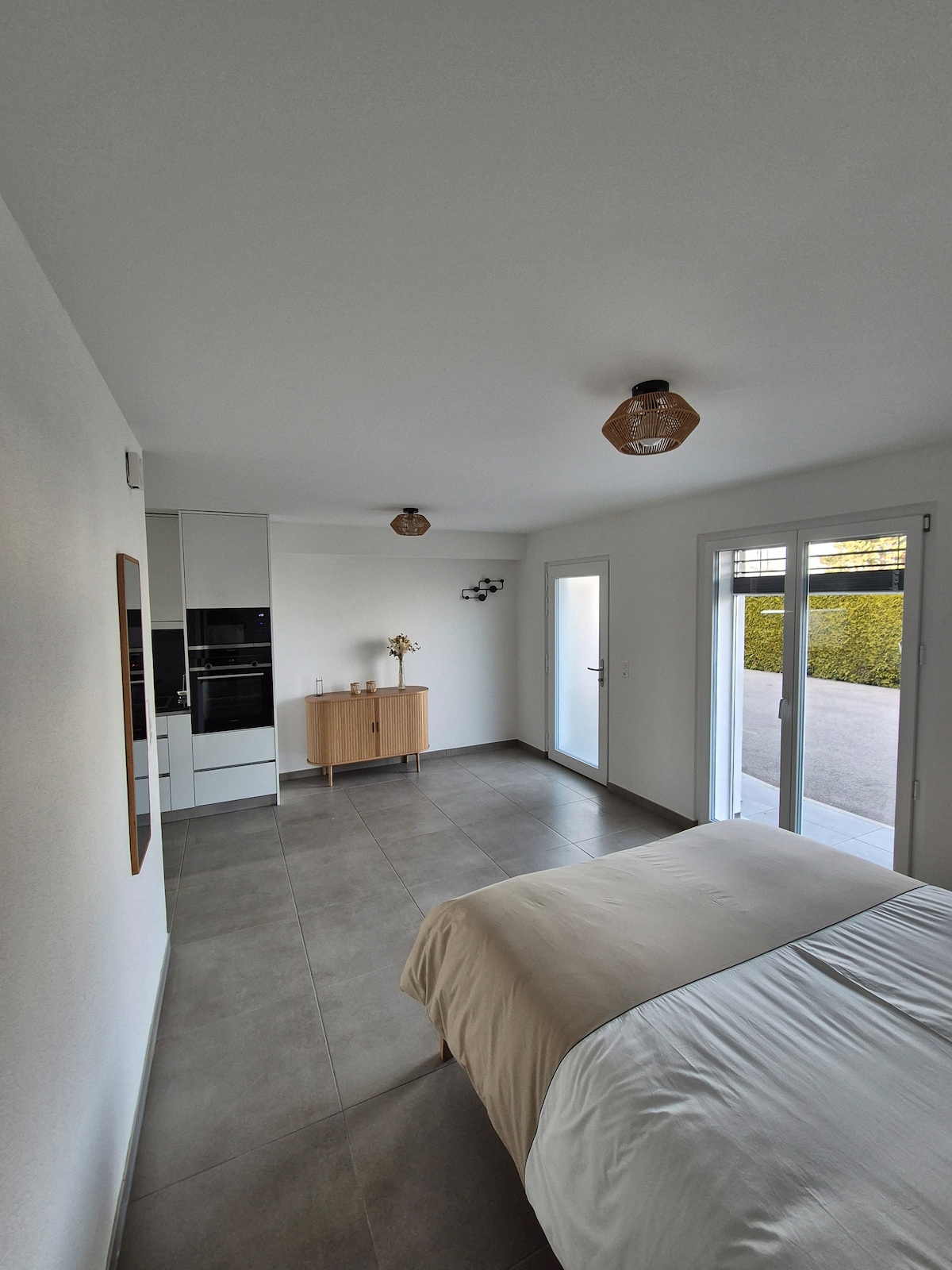 May pribadong pasukan at kumpleto ang property na ito at may: - Komportableng kuwarto - Isang modernong banyo - Madaling magluto - Malaking terrace na may pribadong spa (may dagdag na bayad) at nakamamanghang tanawin ng bundok May libreng paradahan sa harap para sa iyong kaginhawaan. Matatagpuan sa isang tahimik na lugar, perpekto para magpahinga habang nasisiyahan sa maraming aktibidad at paglalakad sa rehiyon. May grocery store at panaderya na malapit lang sa property.