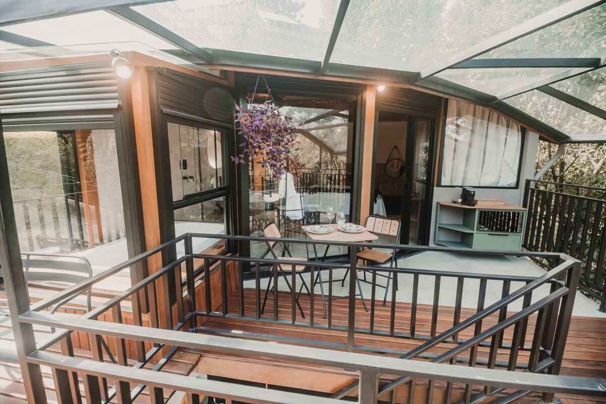 Glashaus na may kamangha - manghang tanawin, almusal at serbisyo