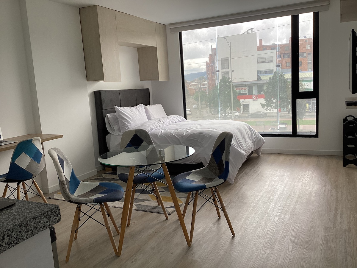 Magpahinga sa tahimik at modernong loft na naaabot ang lahat. Sa Cedritos, magkakaroon ka ng mga parke, cafe, at shopping center na ilang hakbang ang layo, na may madaling access sa transportasyon. Mainam na idiskonekta nang hindi umaalis sa Bogotá. Ang gusali ay may gym, katrabaho, BBQ terrace at 24/7 na seguridad. Masiyahan sa mabilis na WiFi, kumpletong kusina at komportableng higaan sa isang lugar na idinisenyo para sa iyong kaginhawaan. Mag - book at mabuhay ang kaginhawaan at lokasyon nang may perpektong pagkakaisa!