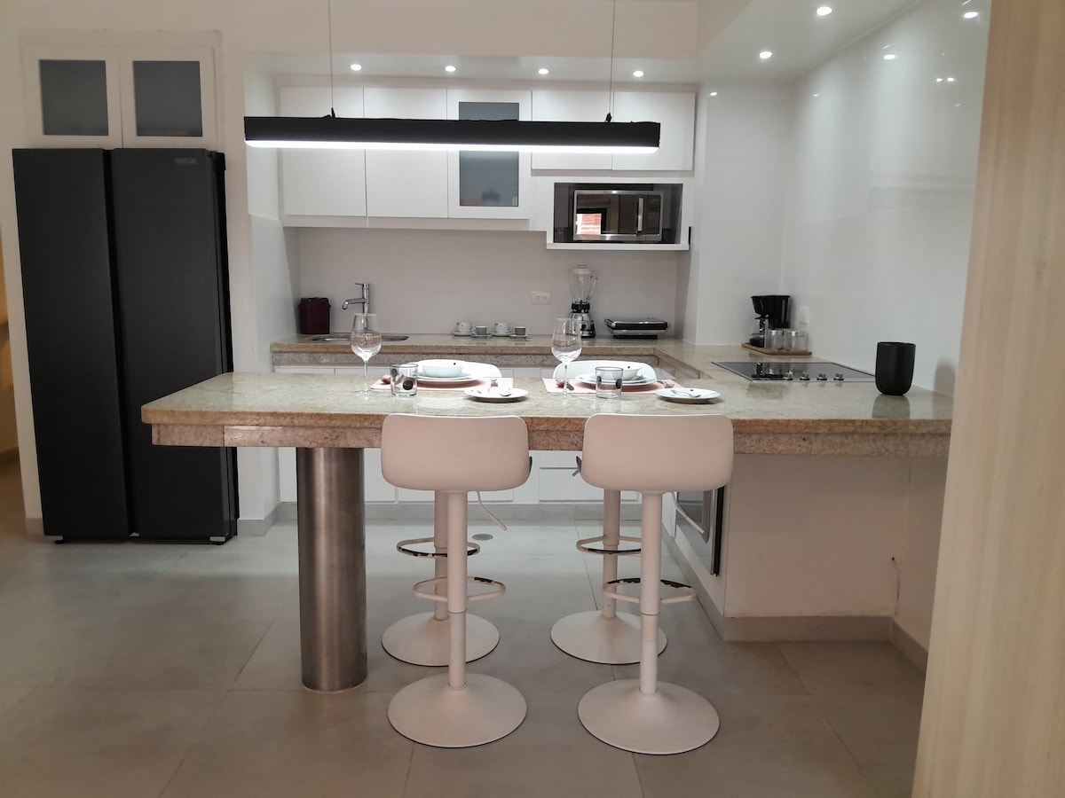 Masiyahan sa hindi malilimutang pamamalagi sa maganda at modernong kumpletong apartment na ito, na matatagpuan sa pinakamahusay at pinaka - eksklusibong lugar ng Isla na nakaharap sa dagat at sa Tibisay Hotel Boutique, malapit sa mga pangunahing atraksyong panturista. Ilang kilometro lang ang layo sa mga pinakamagandang mall at restawran. Nasa harap kami ng magandang beach club na Downtownbeach Margarita kung saan puwede kang mag‑enjoy sa dagat at sa iba't ibang aktibidad na panlibangan at pampalakasan, kabilang ang padel, beach tennis, at kayac.