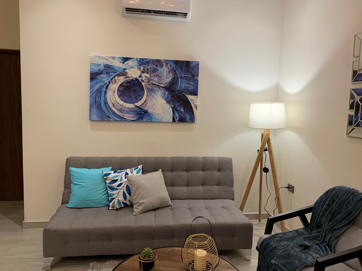 Bagong - bagong apartment, malapit sa lahat ang kanilang pamilya kung mananatili ka sa lugar na ito na may gitnang lokasyon. Matatagpuan ang apartment sa gitna ng Guaymas dalawang bloke mula sa pier, 10 minuto mula sa Miramar Beach at 20 minuto mula sa San Carlos Para sa iyong kapanatagan ng isip at seguridad, mayroon kaming closed circuit sa pribado (mga panseguridad na camera), electric gate na may saradong garahe para sa iyong sasakyan.